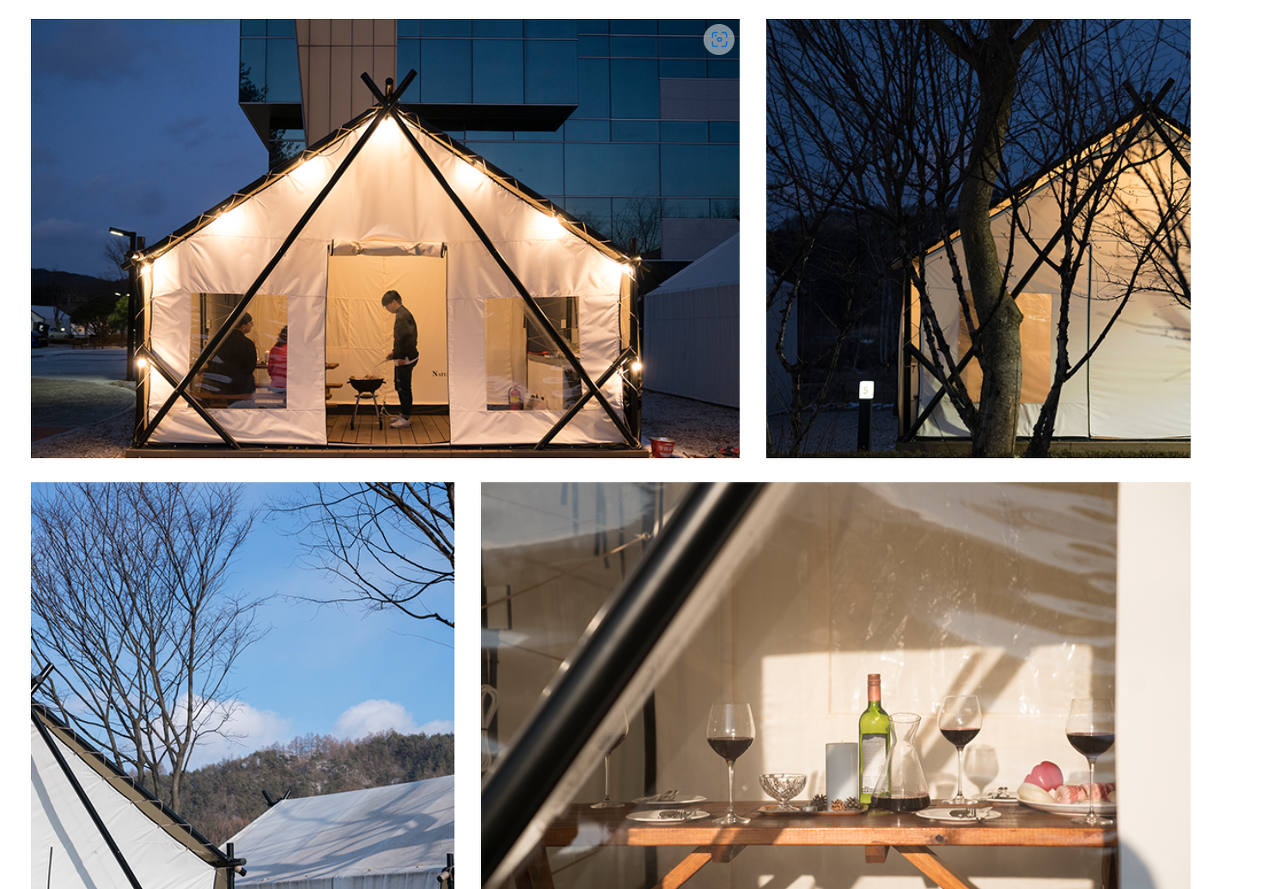 서핑파크에서 리조트 시설외에 글램핑을 이용할 수 있는 시설이 있는데