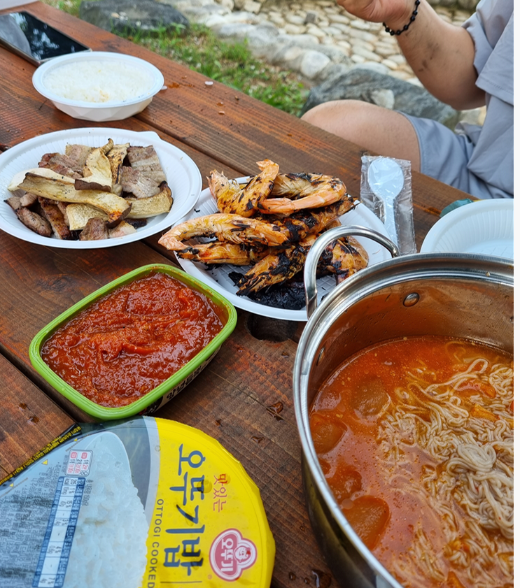야외에서 고기도 구워먹고 새우도 구워먹고
