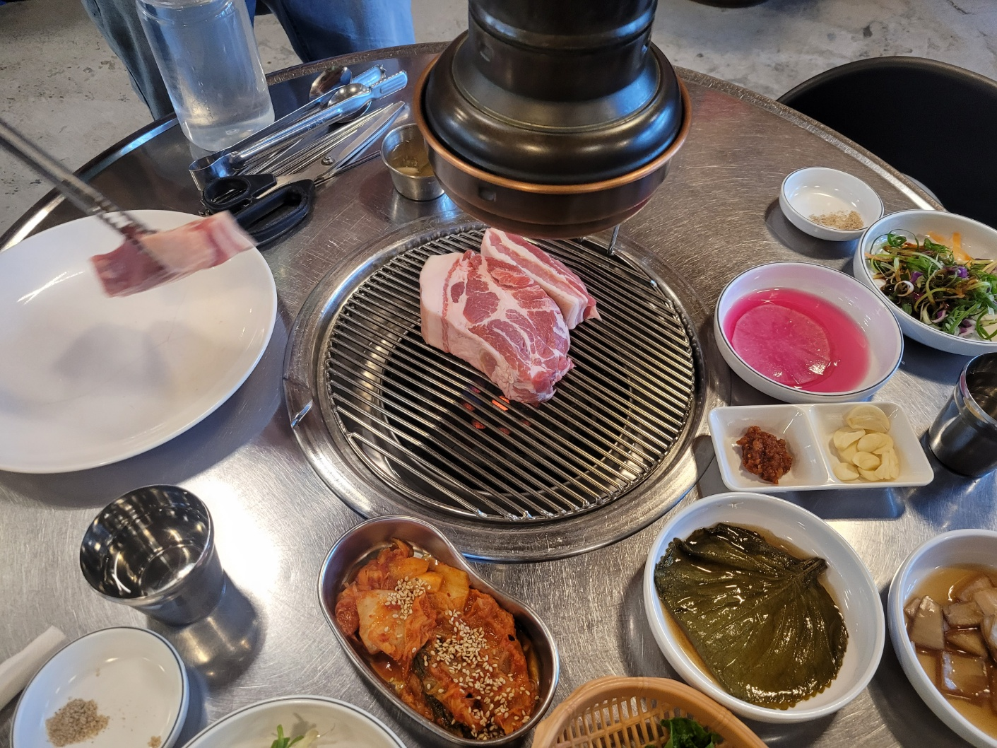 직원분이 목살을 먼저 드시라고 권합니다.