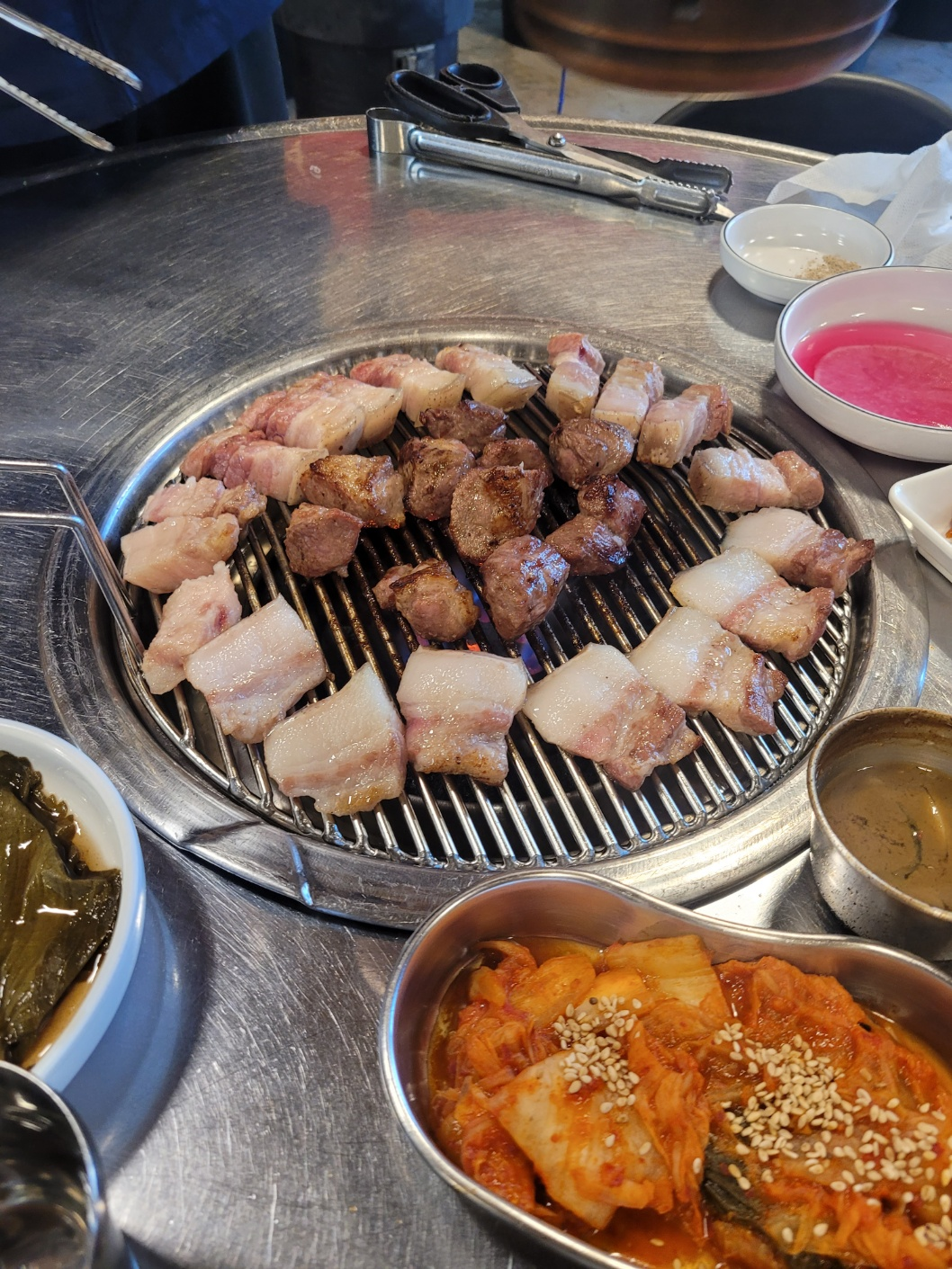 목살이 먼저 굽히고