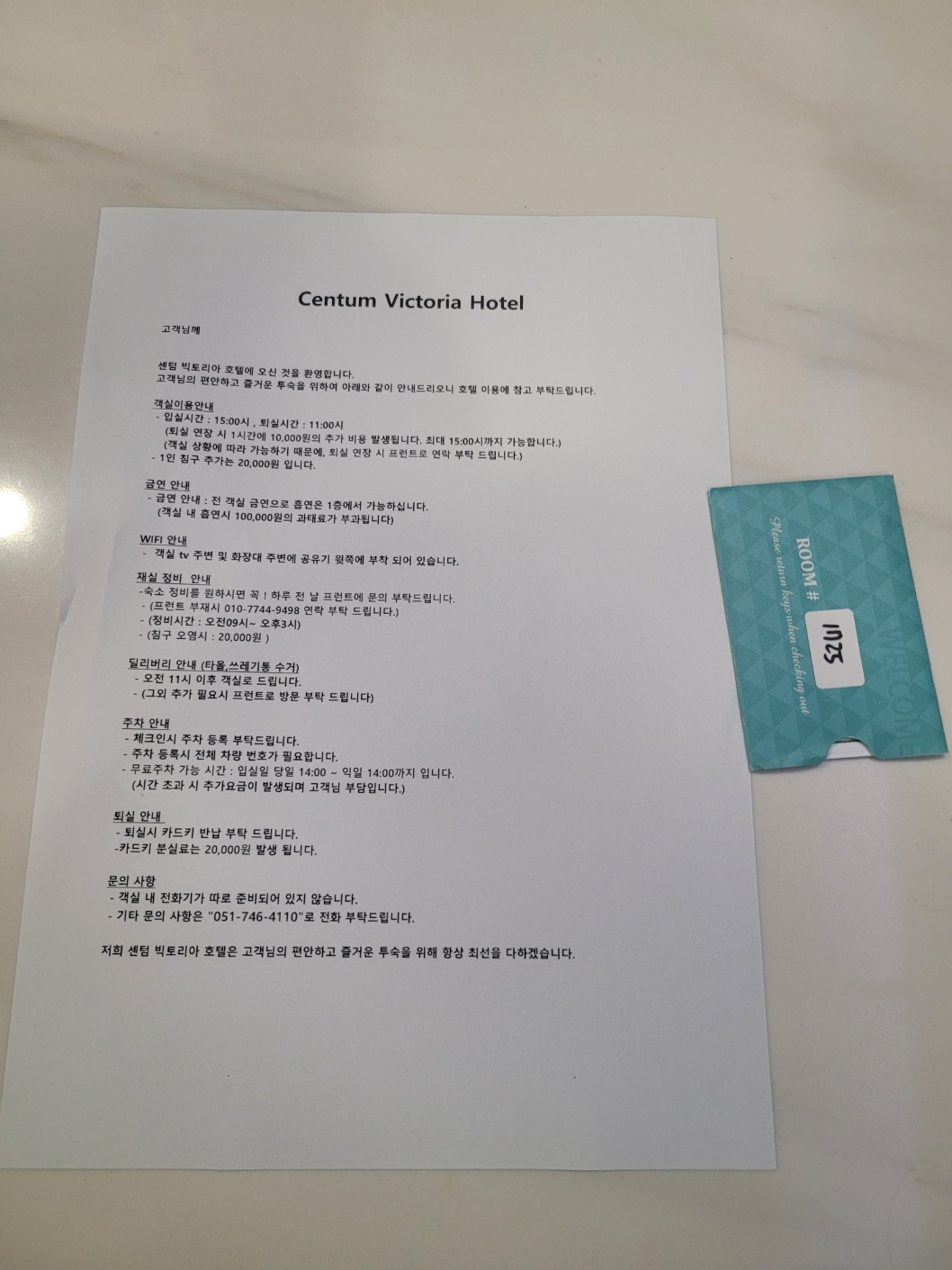 일반적인 대한민국 모든 호텔과 비슷합니다.